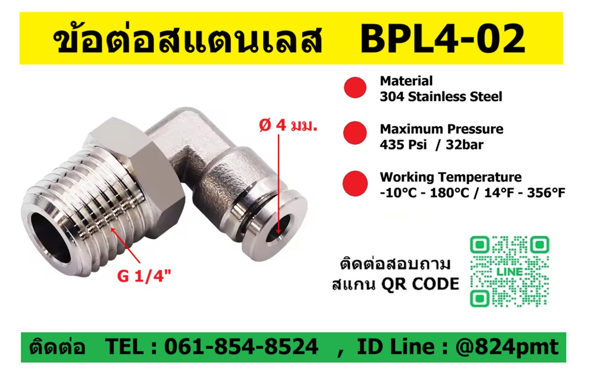 คุณสมบัติ ข้อต่อลมสแตนเลส304