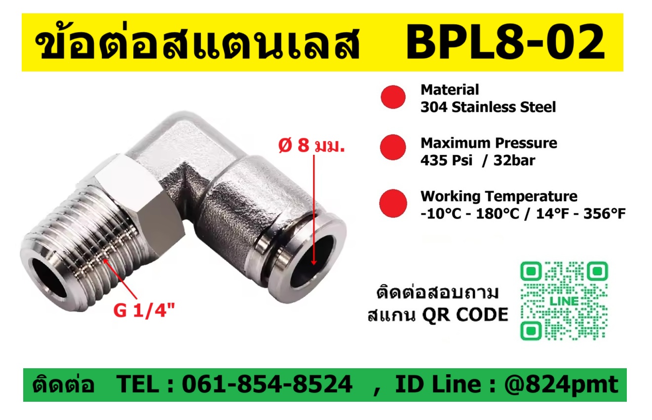 คุณสมบัติ ข้อต่อลมสแตนเลส304