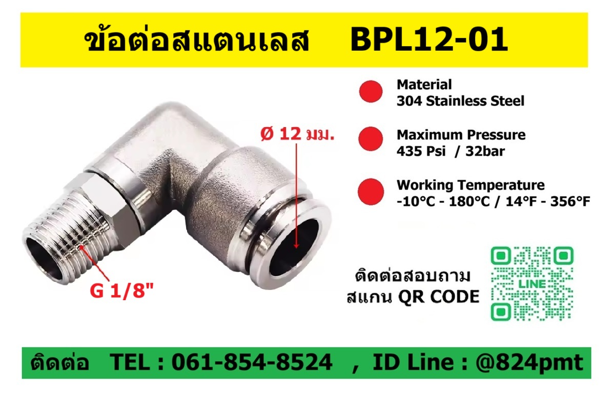 คุณสมบัติ ข้อต่อลมสแตนเลส304