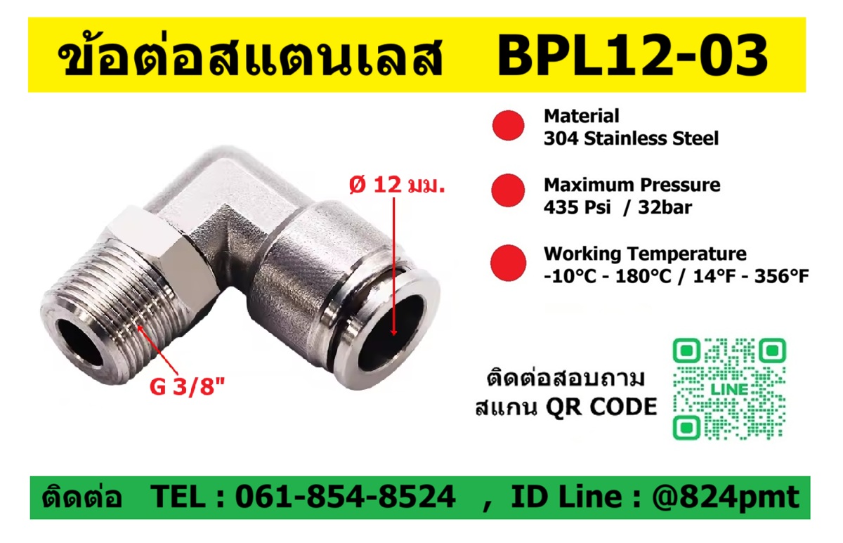 คุณสมบัติ ข้อต่อลมสแตนเลส304